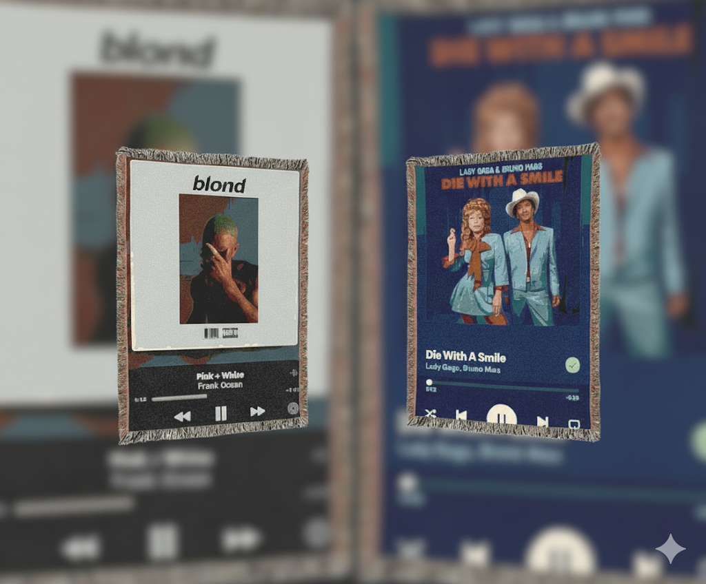 Each blanket is woven in-house using high-quality cotton yarn, turning your favorite album art into a cozy, lasting keepsake — all by our small team, start to finish.